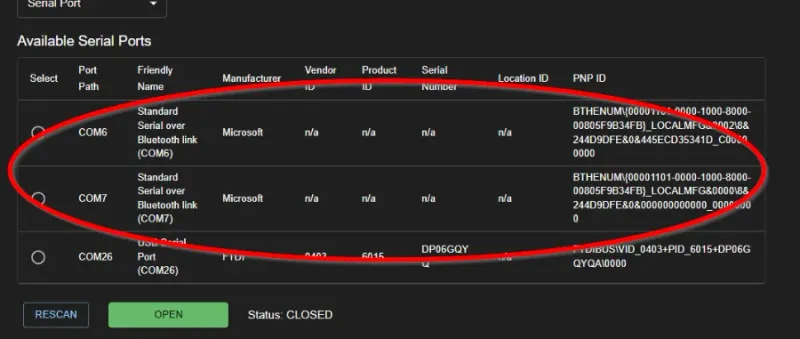 - BLE: The BLE specification does not define a serial port standard, but there are many proprietary implementations available. See below for more details.