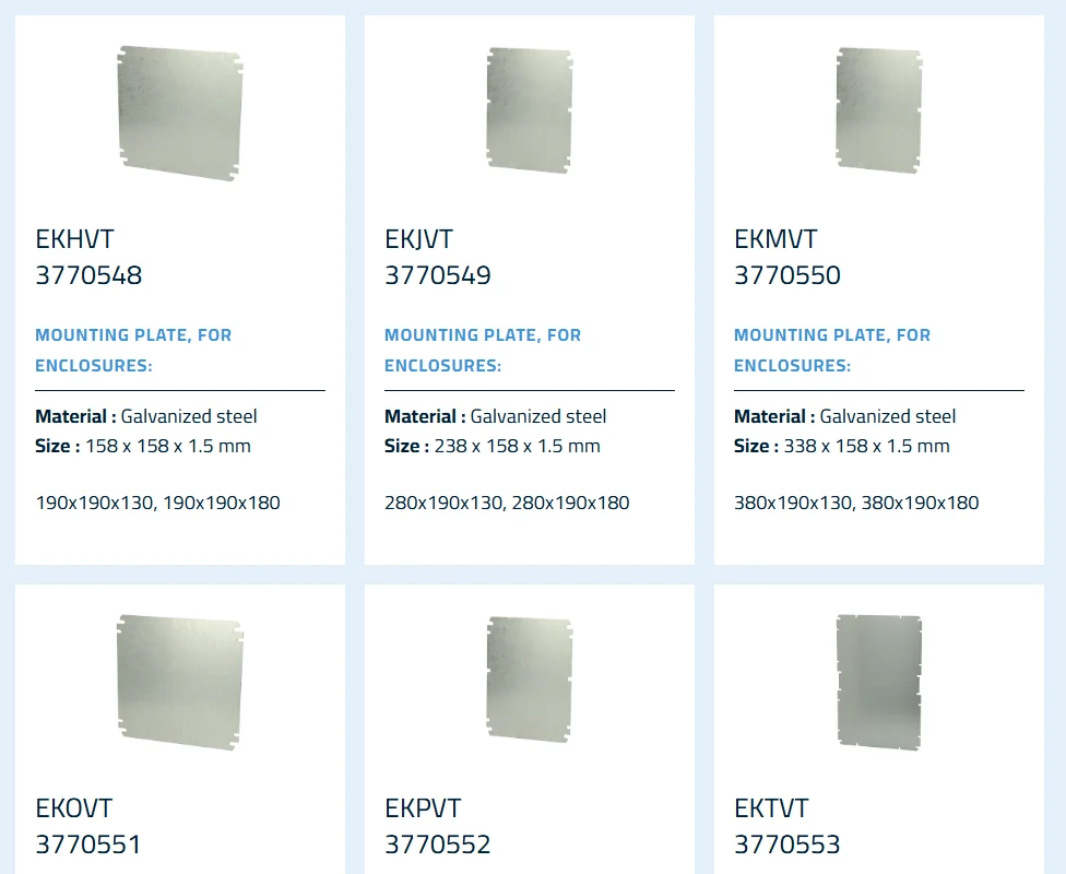 Mounting plates are available for many of the enclosure sizes.