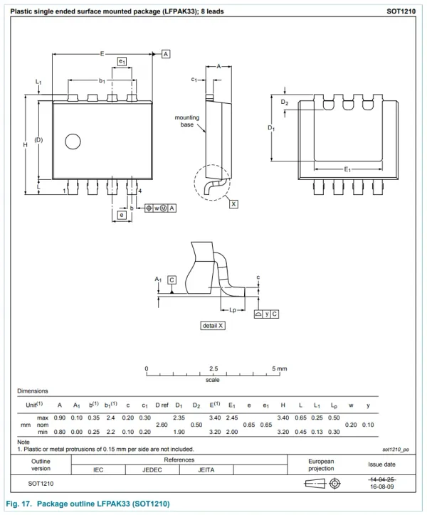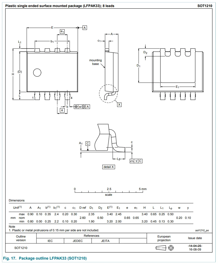 5. NXP. SOT1210: LFPAK33 - Plastic, single ended surface mounted package (LFPAK33); 8 leads; 0.65 mm pitch; 2.7 mm x 3.4 mm x 0.9 mm body [package information]. Retrieved 2026-04-08, from https://www.nxp.com/packages/SOT1210.html.