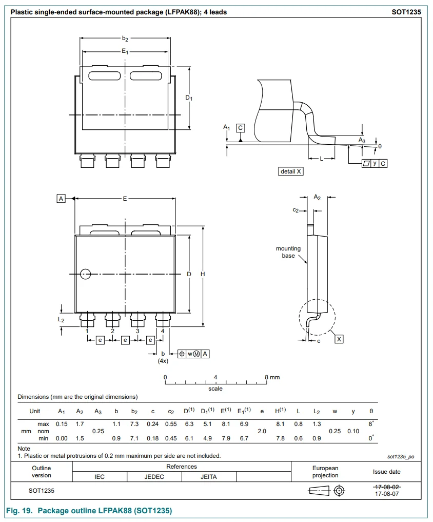 14. Nexperia (2022, May 30). SOT1235 - plastic, single-ended surface-mounted package (LFPAK88); 4 leads; 2 mm pitch; 8 mm x 8 mm x 1.6 mm body [package information]. Retrieved 2026-04-08, from https://assets.nexperia.com/documents/package-information/SOT1235.pdf. 2