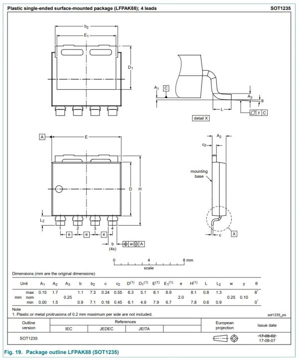 The dimensions of the LFPAK88 (SOT-1235) package from Nexperia.13
