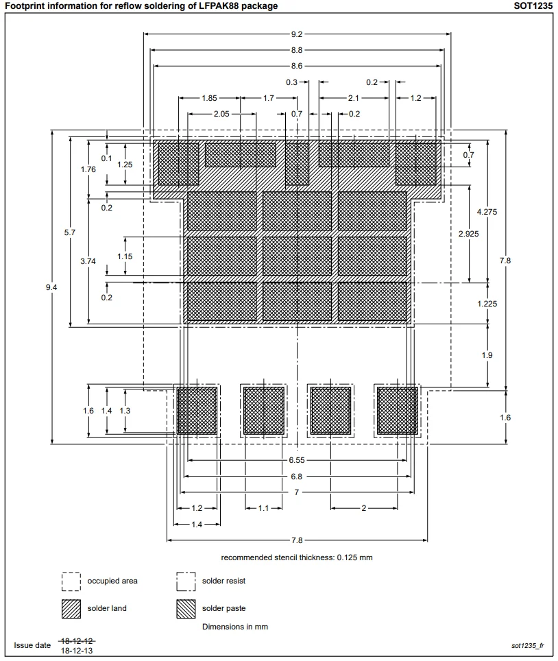 The recommended footprint for the LFPAK88 package.14