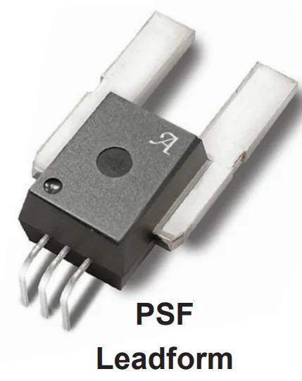 The PSF leadform package has it’s signal leads bent, but it’s current leads are straight. This is to allow the current leads to connect to a bus bar or similar mechanical arrangement that is not necessarily part of the PCB.