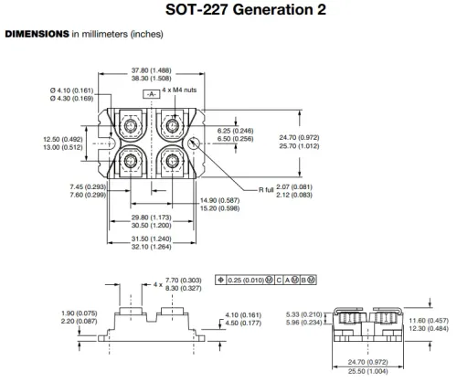 5. Vishay. Outline Dimensions - SOT-227 Generation 2. Retrieved 2026-04-02, from https://www.vishay.com/docs/95423/sot-227g2.pdf.