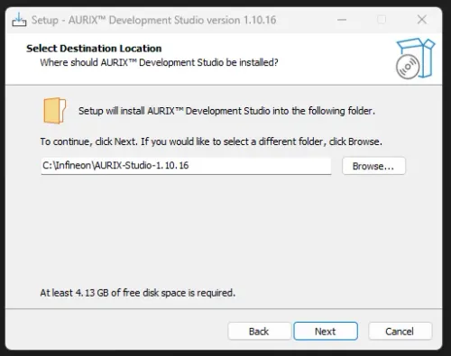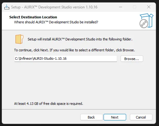 , e.g. C:\Infineon\AURIX-Studio-1.10.16