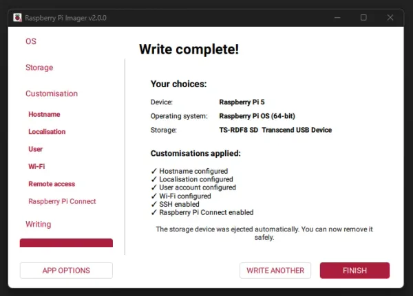 The Raspberry Pi Imager is a desktop GUI tool that allows you to easily write operating system images from a Raspberry Pi to an SD card. It runs on Windows, macOS and Linux. As of December 2025 it is the recommended way to write OS images to an SD card and is at version 2.0.2.